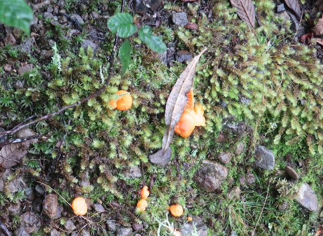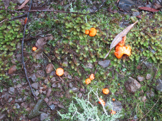 The rain held off mostly as we went up the road to Bett's Track. We followed it beside the North West Bay River to where the Cathedral Rock Track goes off. Lots of colourful fungi, and a few rocky sections to negotiate.